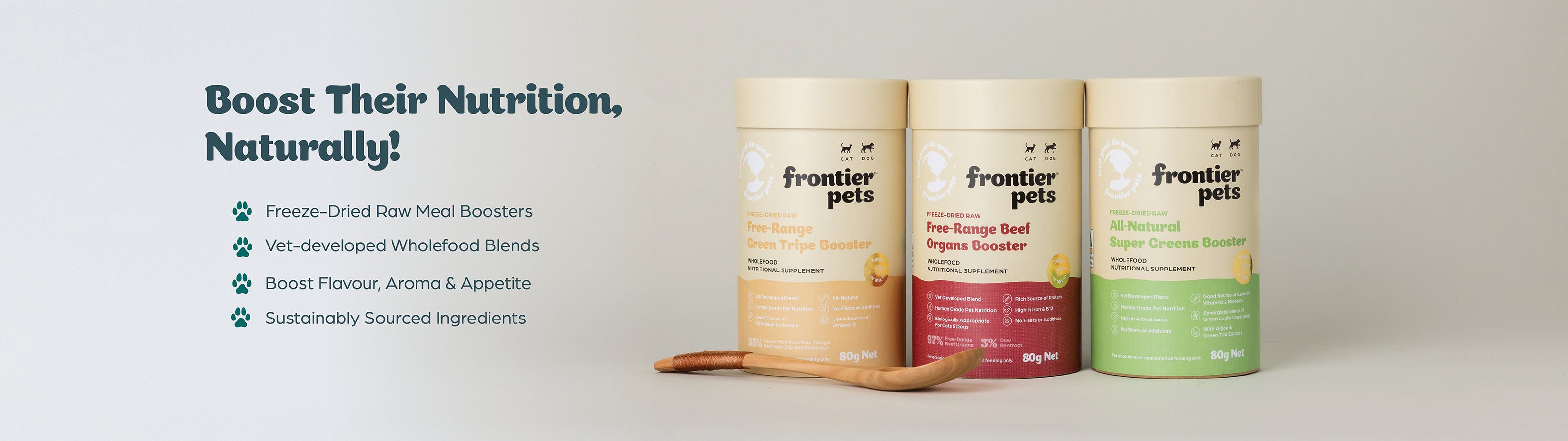 Frontier Pets Boosters are freeze-dried raw whole food nutritional supplements designed to enhance your pet's meals. Available in three delicious flavors, they are crafted from premium, natural ingredients to support your pet's overall health and well-being.