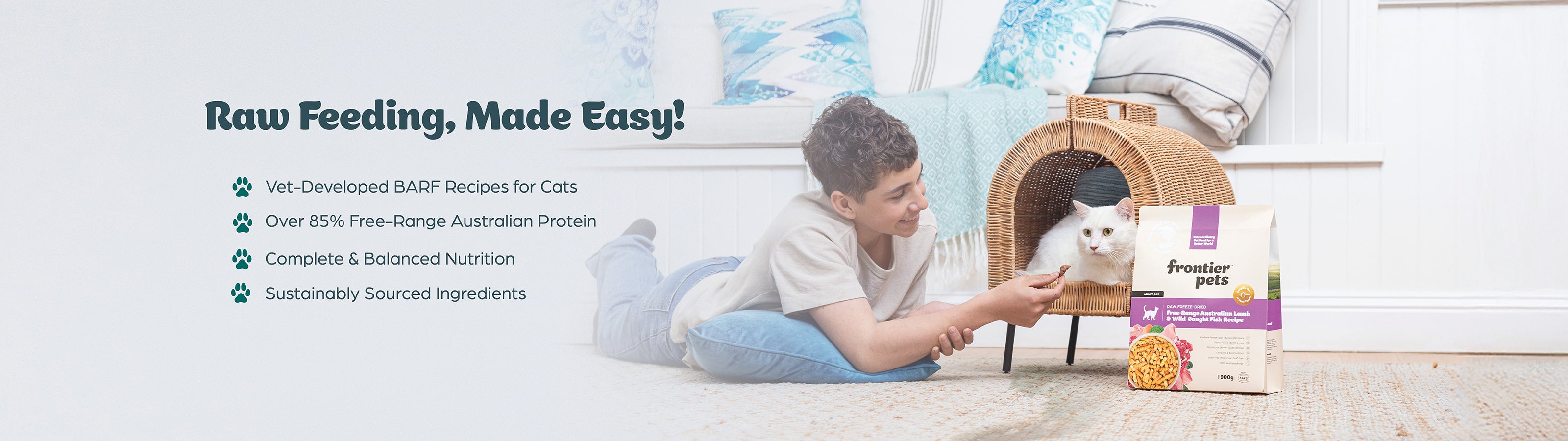 Write a clear and concise answer to guide your customers.Our cat food stands out from other brands because it combines the benefits of raw nutrition with the convenience of freeze-dried preparation. Unlike conventional cat food found in the pet food aisle, our recipes use free-range and organic ingredients to create a complete and balanced diet for your cat. Frontier Pets cat food caters to natural carnivores, providing high-quality, human-grade ingredients that are ideal for fussy eaters, cats with sensitive stomachs, or those needing long-term health support. With a focus on grain-free food and no low-grade ingredients, we offer nutritious cat food that promotes healthier lives and peak health for your feline.