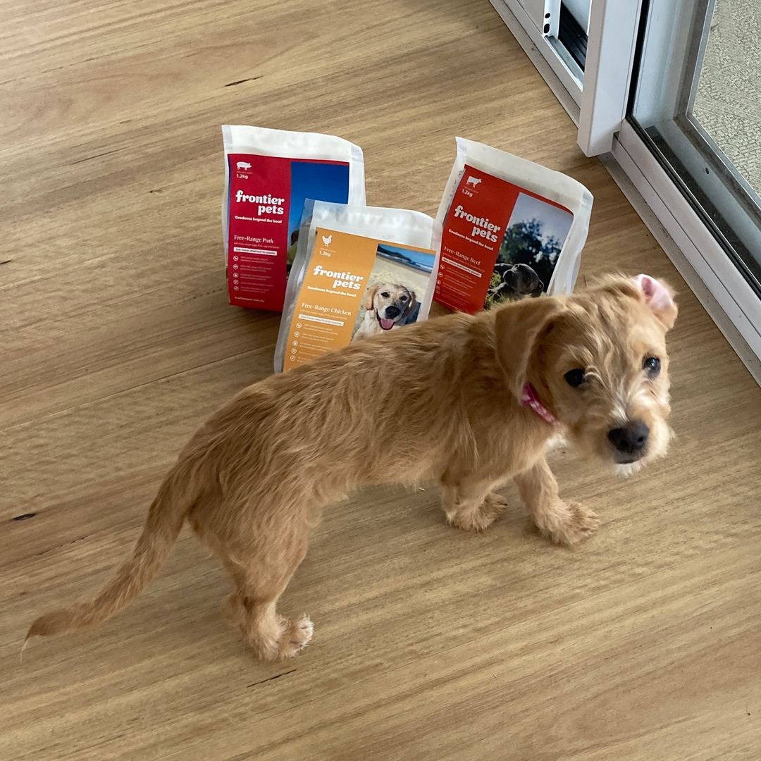 "Tilly is now five months of age, and since she's been with us, we have fed her Frontier Pets Puppy. She loves all three flavours. I like the fact that it doesn't smell and is so easy to prepare and doesn't have to be stored in the freezer. Ready to take take out of the pantry, pour the warm water in and presto it's done in 30 seconds. And it's been eaten in about 16 seconds!" - Jennifer P.