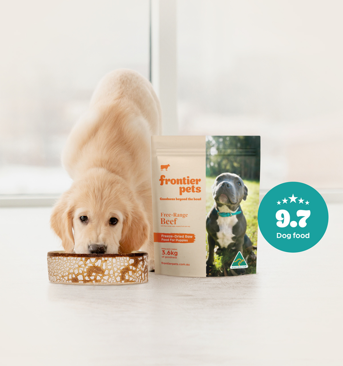 "Tilly is now five months of age, and since she's been with us, we have fed her Frontier Pets Puppy. She loves all three flavours. I like the fact that it doesn't smell and is so easy to prepare and doesn't have to be stored in the freezer. Ready to take take out of the pantry, pour the warm water in and presto it's done in 30 seconds. And it's been eaten in about 16 seconds!" - Jennifer P.