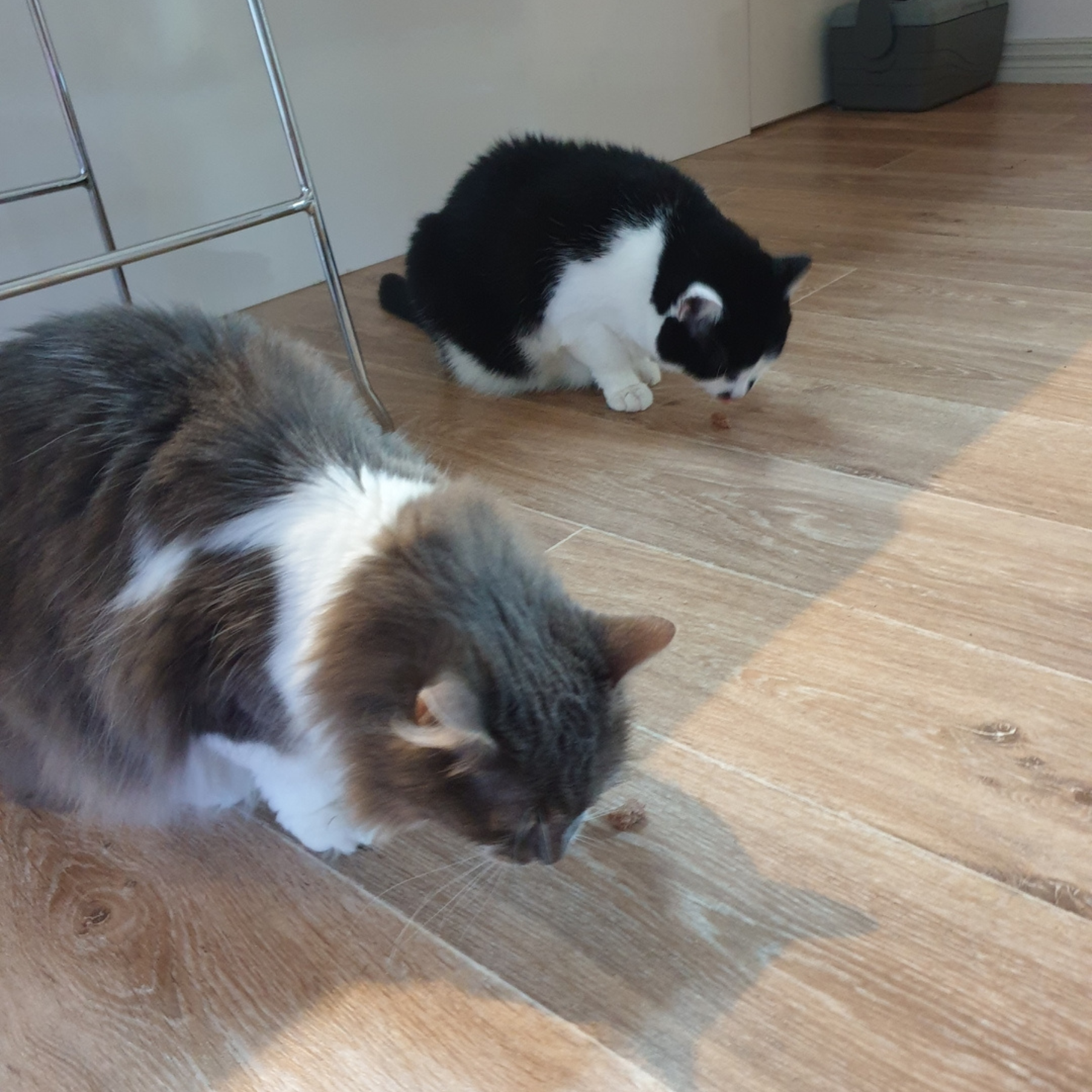 "They were hesitant at first, but were brave enough to try something different. The girls love the wild-caught fish and lamb, not so fussed with beef, but that's ok. After two weeks of eating the freeze-dried raw food, their coats are so soft, and shine, they look so much healthier. Thank you frontier for creating real food for cats." - Nicola