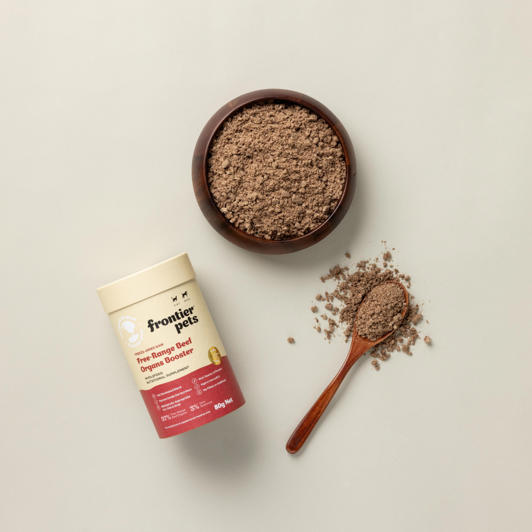 *Frontier Pets Freeze-Dried Raw Pet Food can be used as a complete balanced meal for 100% raw feeding, or as a Topper for a raw nutrient boost to their usual meals. See our Feeding Guide for details.​